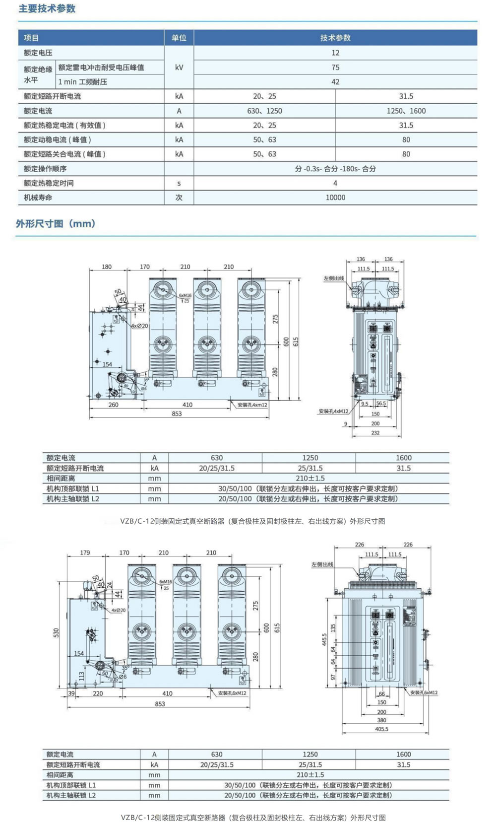 VZB/C-12側(cè)裝固定式真空斷路器